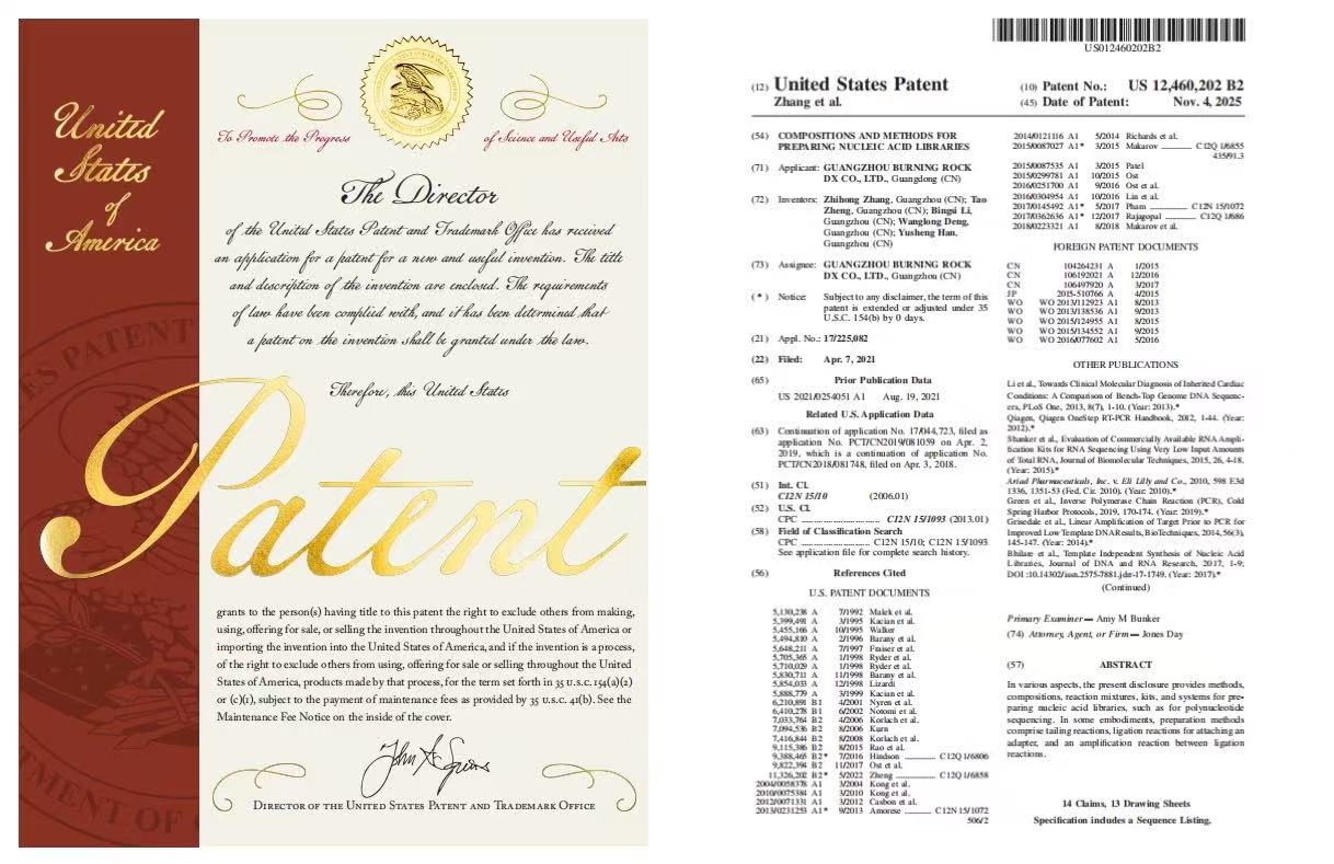 GUANGZHOU, China, January 06, 2026-Recently, Burning Rock Dx received authorization from the United States Patent and Trademark Office (USPTO) for the self-developed ultra-sensitive detection technology, ELSA-seq (Patent No. US 12460202 B2). This marks the first U.S. patent granted to ELSA-seq following its patent approval in China, signifying a major milestone. The achievement represents authoritative international recognition of Burning Rock’s innovative liquid biopsy technology.